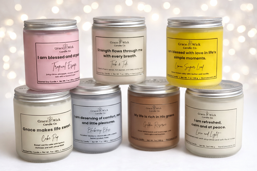 Each candle embodies a unique scent paired with a thoughtful affirmation, creating an experience that nurtures both heart and home.